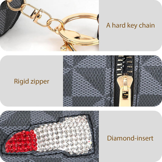 2 Pack Lip Gloss Case, Mini Lipstick Organizer for Perfume Fingernail Polish, Travel Leather Lipstick Bag with Keychain (Blue, White)