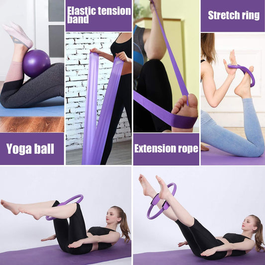 5 Pcs Pilates Ring Set 14" Yoga Fitness Magic Circle Pilates Equipment for Home Workouts Include Ball,Stretching Strap,Extension Strap and Training Ring for Fitness Kit